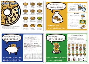 COMMENT// 「Bagel book」の内容を新しくしてポスターにしたもの。 4枚に分けてそれぞれベーグルの特徴をわかりやすくみせました。 A4サイズのこのポスターはデパ地下やスーパーなどで掲示していただきました。