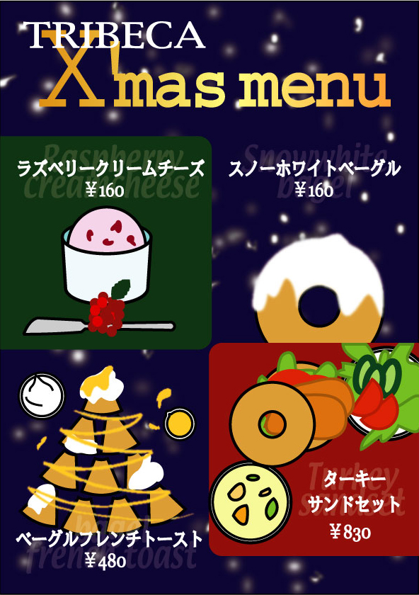 COMMENT// TRIBECA DELI聖蹟桜ヶ丘店でクリスマス限定メニューを販売した際に 制作したポスター。